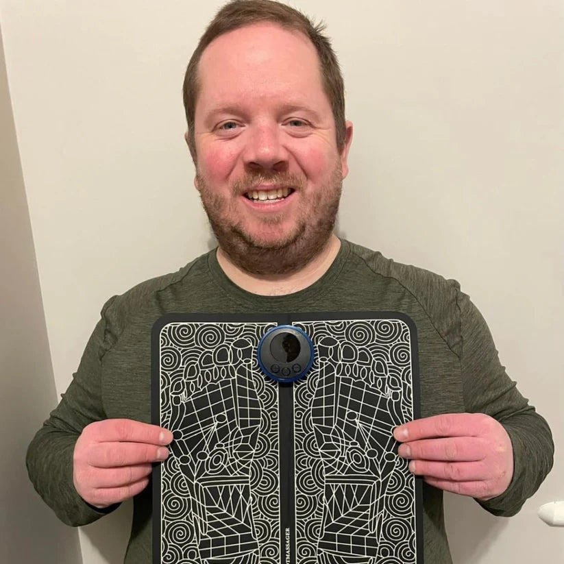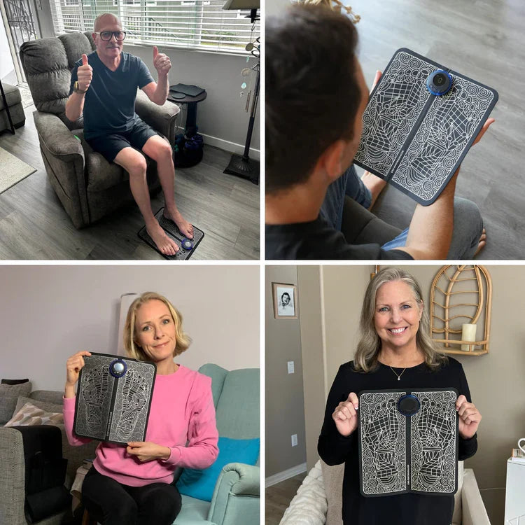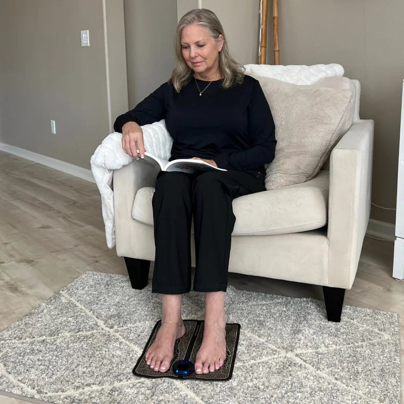 O Massageador para Pés ReliveX™ estimula a circulação com impulsos direcionados através das solas dos pés. Isso melhora o fluxo sanguíneo, deixando suas pernas e pés mais ativos e relaxados.